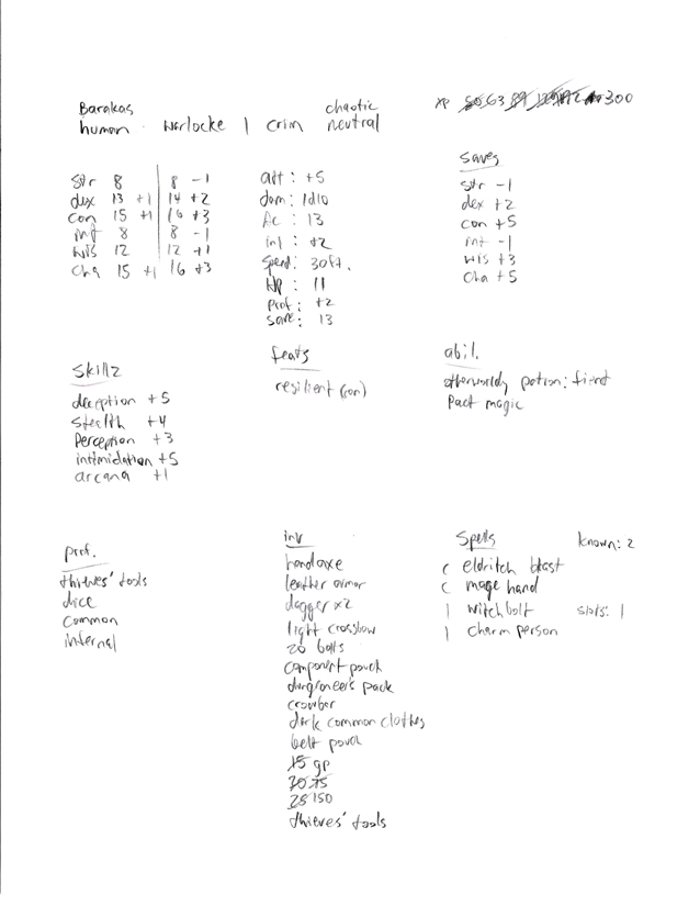 Chaotic Neutral Human Criminal and 1st-level Warlock (Fiend)