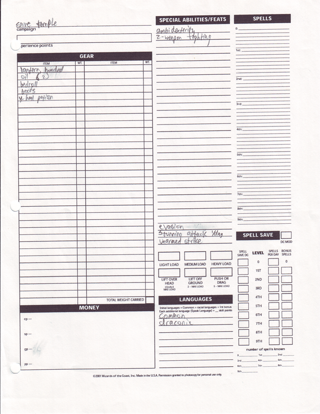 Charisma: 9 (-1)