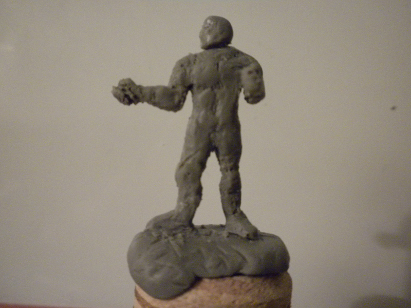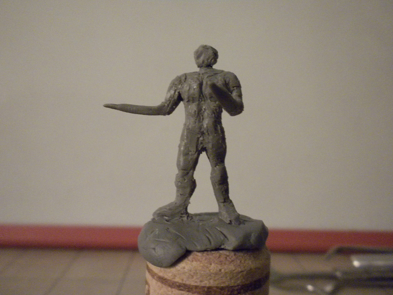 Now comes the hard part - sculpting this mess into a human. I did a little bit of sculpting and got it at least a little closer. So anyway, I have my work cut out for me. I did some more last night, but then I had to remove the mini from the cork and I really horked it up. Hopefully I can fix it tonight. More pictures tomorrow.